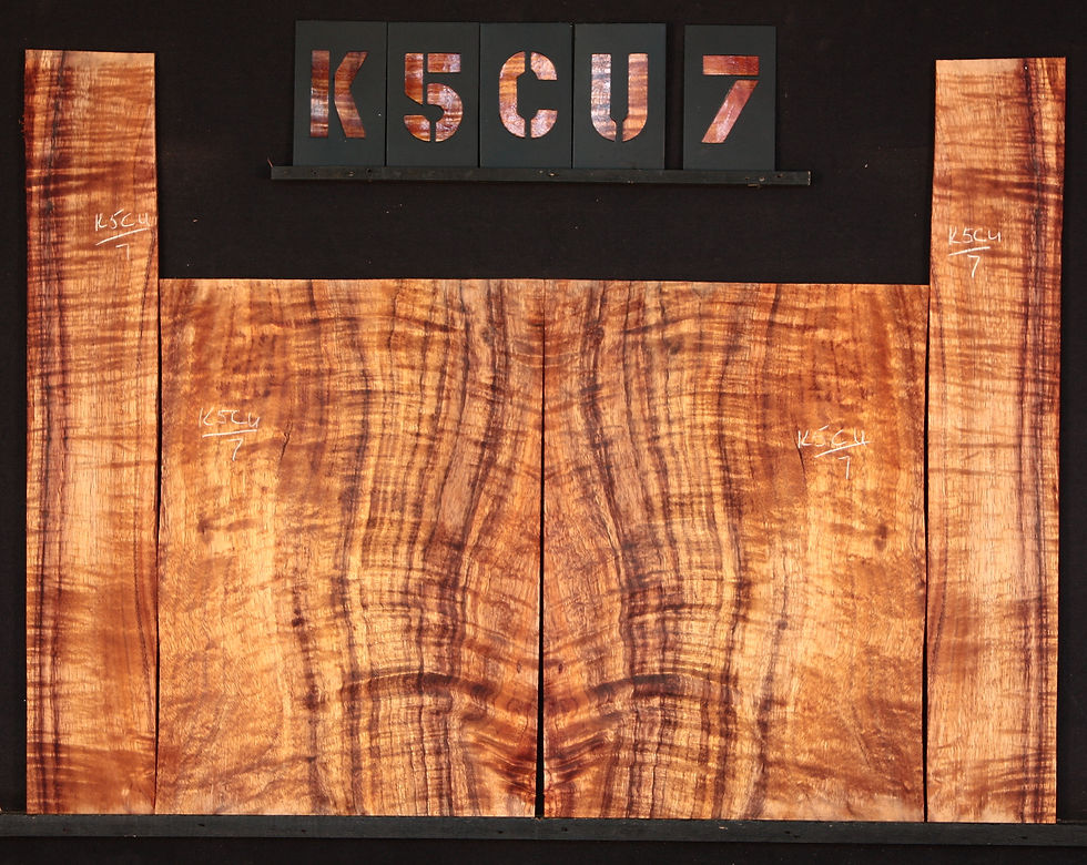 Our Koa concert ukulele sets are 4-piece sets consisting of a one-piece top book matched to a one-piece back (two consecutive slices) and two sides.